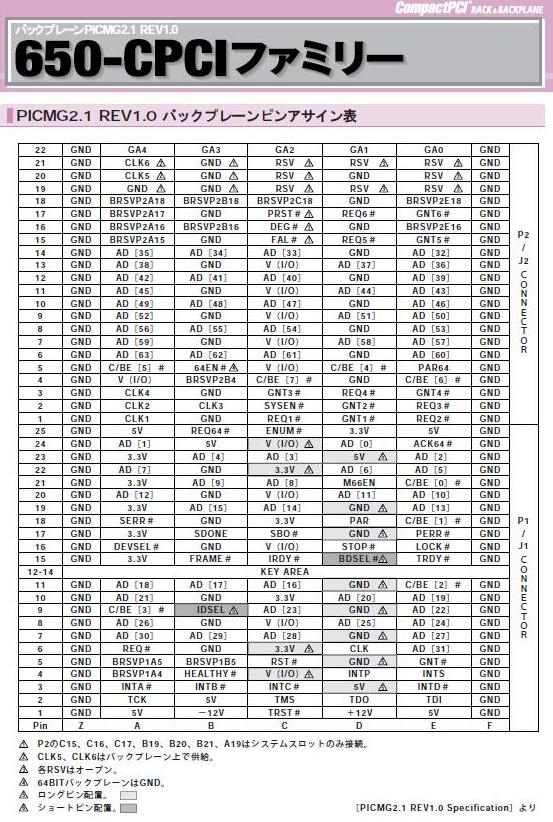 PICMG2.1 REV1.0 ピンアサイン表